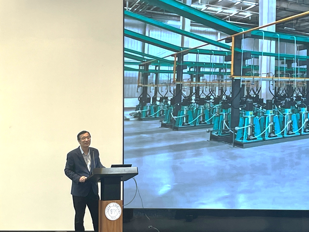 在报告中,胡金波研究员系统阐述了研究团队在含氟砜试剂开发、新型二氟卡宾试剂设计与氟碳链可控延长等方向的突破性进展。他通过详实的实验数据和生动的案例展示,揭示了有机氟化学和现代工业的相结合,展现了有机氟化学巨大的应用前景。特别值得关注的是,团队创新开发的有机萃取法成功实现锂-7同位素(丰度>99.95%)高效分离,并完成工业化中试,为我国第四代钍基熔盐堆核能系统的关键材料供应提供了技术保障。报告结束后,胡金波研究员针对与会师生提出的相关问题,进行了深入解答。本次学术报告,不仅拓宽了青年学子的学术视野,更为氟化学领域的前沿探索与学术交流注入了新的活力。