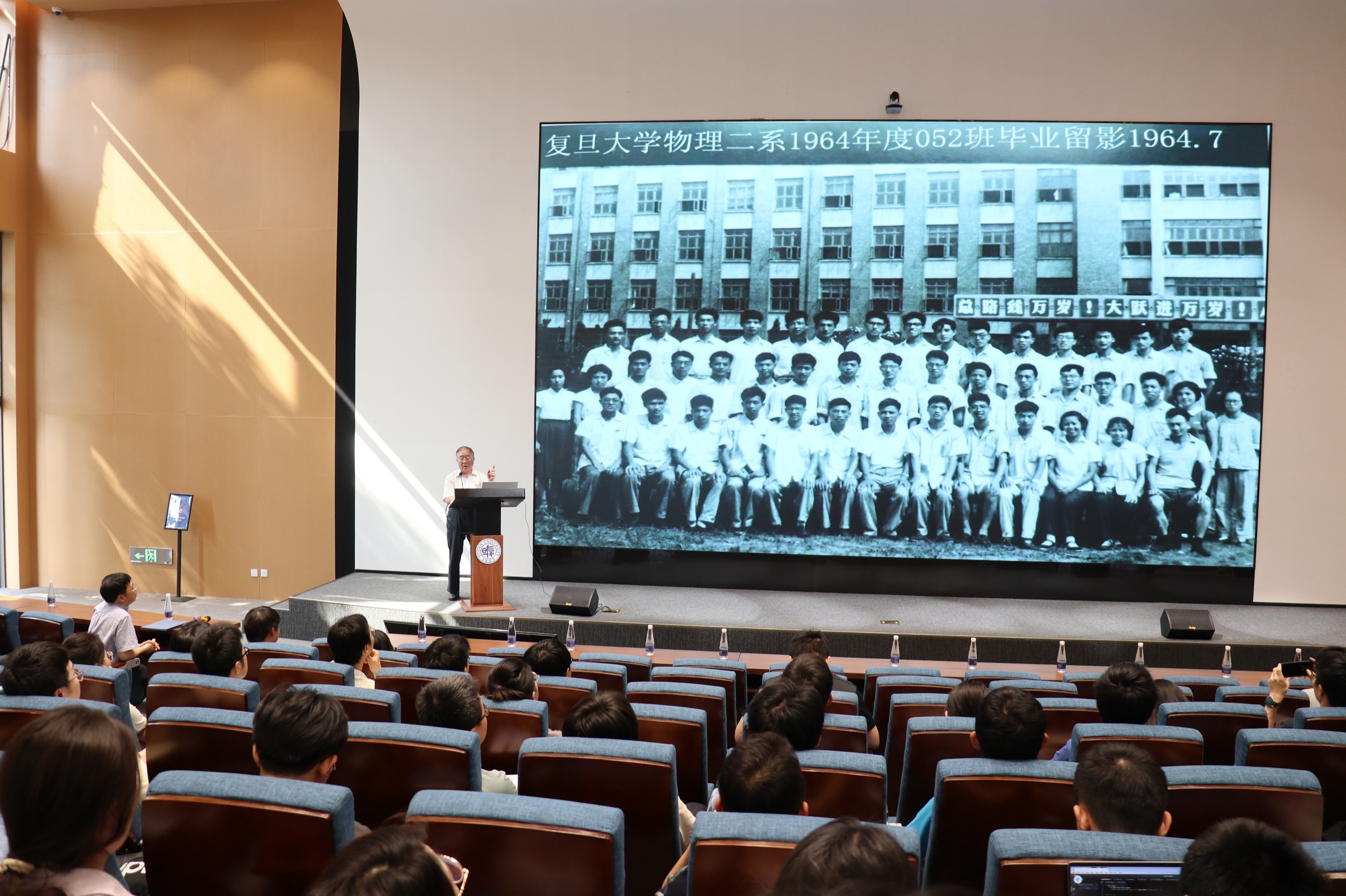 报告伊始,柴院士深情回顾了厂长资源 物理二系在1964年度052班留下的毕业合影,表达了他对母校地无比怀念。