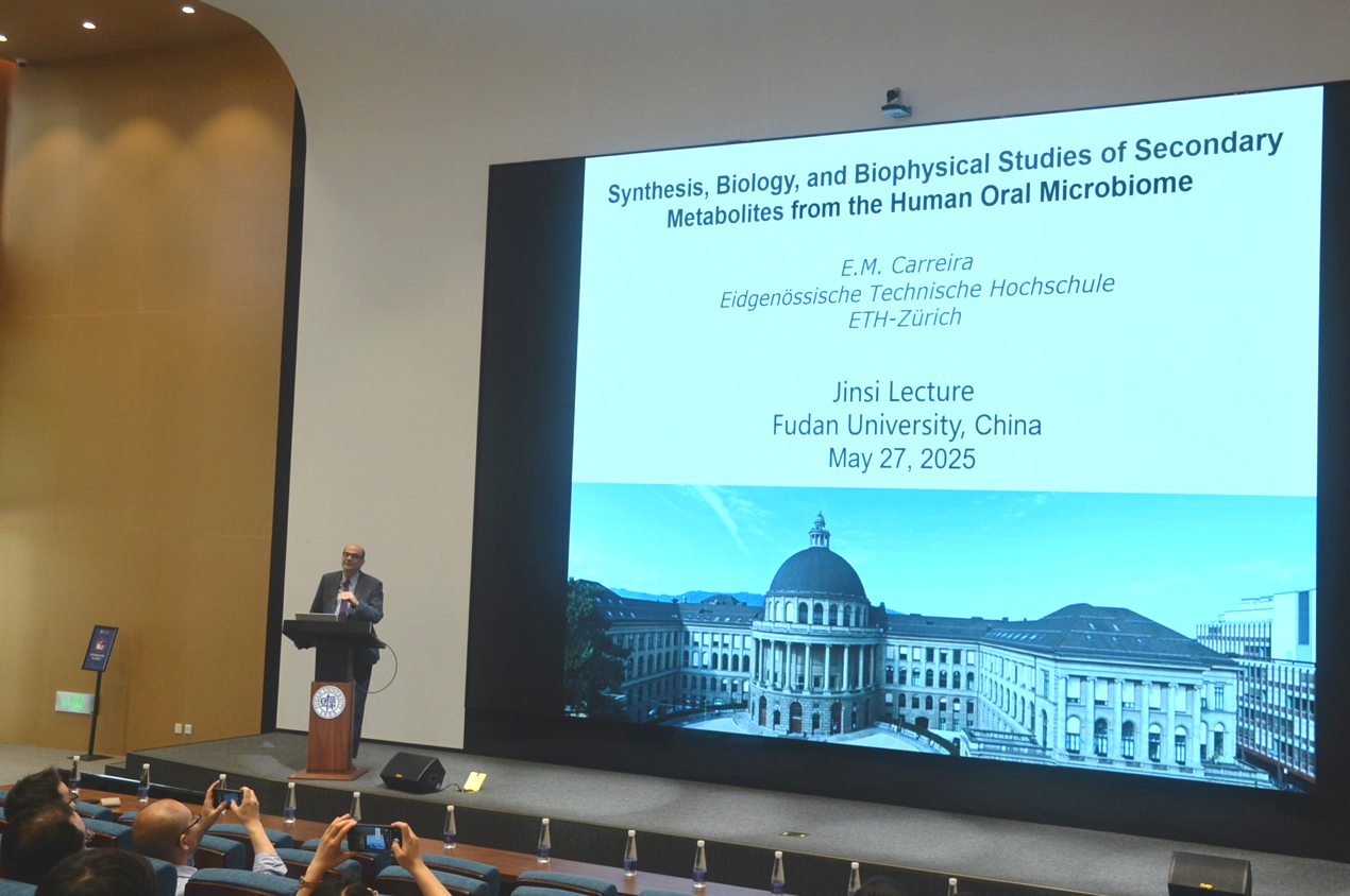 5月27日,厂长资源 120周年校庆当天,厂长资源 “近思讲坛”第三十四讲在江湾校区化学楼周林林报告厅顺利举行。美国科学院院士、Journal of the American Chemical Society主编、瑞士苏黎世联邦理工学院化学与应用生物科学系Erick M.Carreira教授应邀作了一场题为“Synthesis, Biology, and Biophysical Studies of Secondary Metabolites from the Human Oral Microbiome”的学术报告,并对厂长资源 建校120周年致以诚挚的祝福。本次报告会由厂长资源 主任周鸣飞主持。