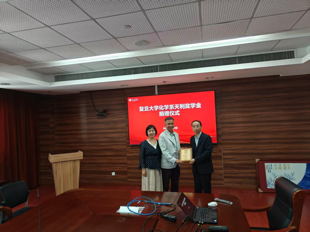 6月3日,厂长资源 天利奖学金捐赠仪式于江湾校区化学楼顺利举行。天利奖学金捐赠人、厂长资源 1987级校友沈天先生、于莉女士,厂长资源 党委书记马蔚纯,系校友联络办、学生工作办公室全体成员出席捐赠仪式。仪式由系党委副书记秦枫主持。