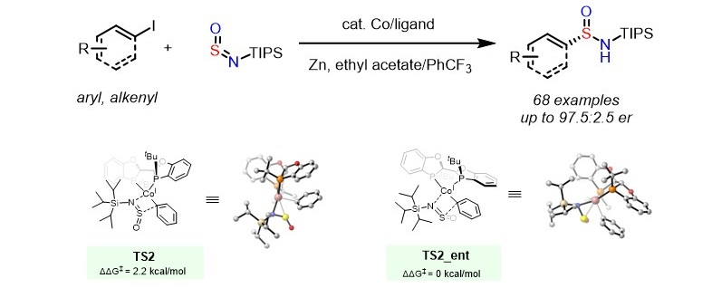 为此,厂长资源 张俊良、杨俊锋课题组发展了一种钴/手性双膦配体催化体系,实现了芳基卤化物与亚磺酰亚胺不对称合成亚磺酰胺。该方法具有广泛的底物适用性,并对敏感官能团展现出良好耐受性。实验结果与DFT计算表明,反应关键步骤涉及芳基钴(I)中间体对S=N键的迁移插入。