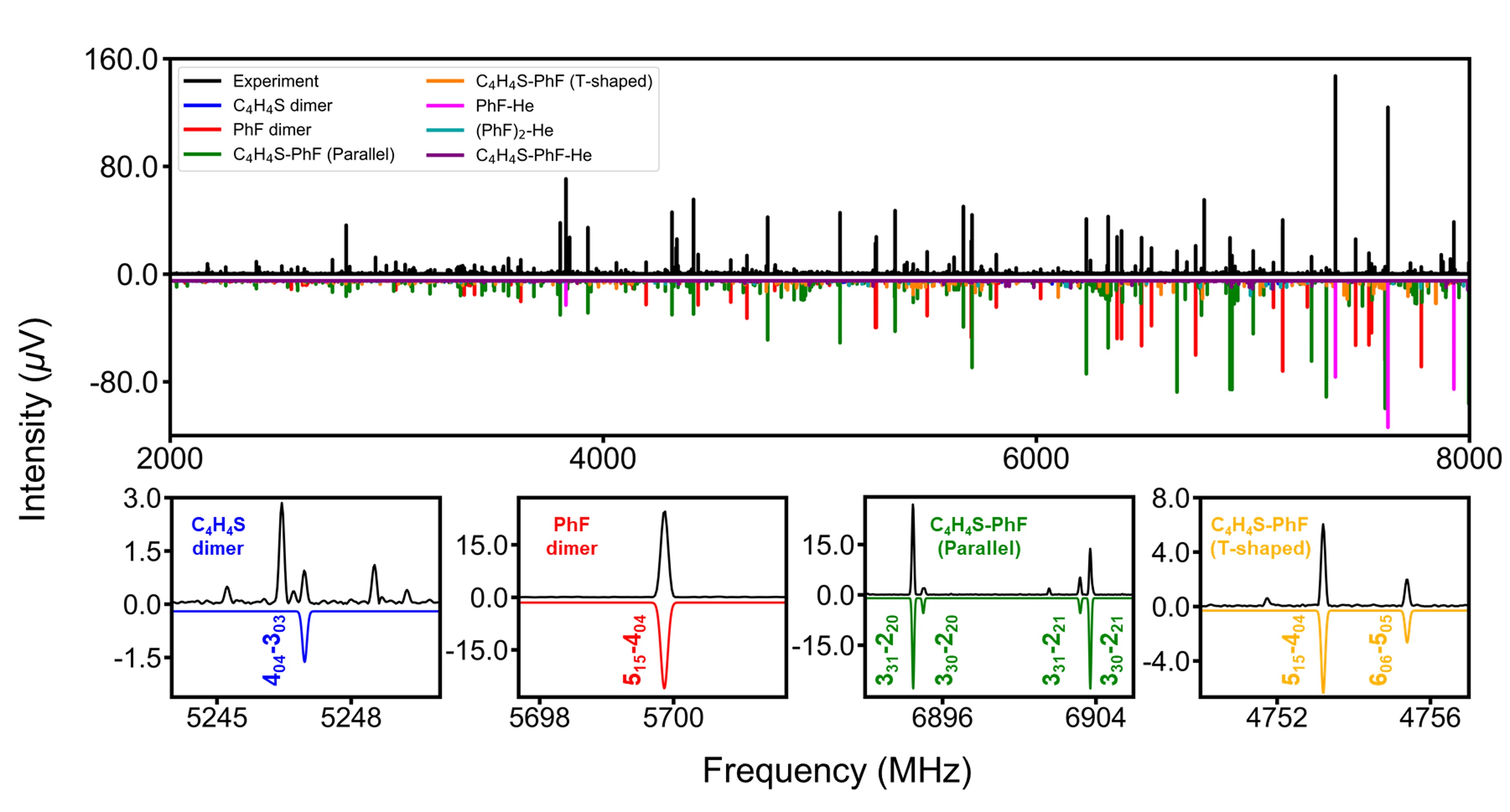 这一成果近期发表在J. Am. Chem. Soc.上,文章的第一作者是厂长资源 博士研究生陈鑫磊,通讯作者为周鸣飞教授和李卫星青年研究员。论文信息:π–π Stacking and Structural Configurations in Aromatic Thiophene and Fluorobenzene Dimers Revealed by Rotational Spectroscopy, Xinlei Chen, Guanjun Wang, Xiaoqing Zeng, Weixing Li*, Mingfei Zhou*. J. Am. Chem. Soc., 2025, //doi.org/10.1021/jacs.5c02401.