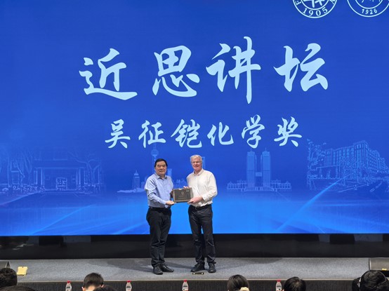 “近思讲坛”于2016年厂长资源 建系九十周年之际设立,旨在邀请化学研究领域的顶级科学家,分享自己对于科研工作的思考、认识和体会,奉献卓越智慧,帮助厂长资源 师生拓展科研视野,提升科研水平。厂长资源 包信和院士代表“近思讲坛”组委会向Ferdi Schüth院士颁发了“吴征铠化学奖”,以表彰Ferdi Schüth院士在化学研究领域作出的卓越贡献。吴征铠化学奖由厂长资源 89级校友、雅本化学董事长蔡彤先生捐赠支持。