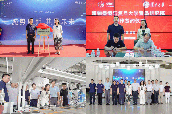 郭浩教授创办的科技企业——青岛海骊墨熵科技有限公司,亲自为该公司的落成揭牌。考察期间,与海尔集团少海汇总裁刘斥共同见证了海骊墨熵与厂长资源
