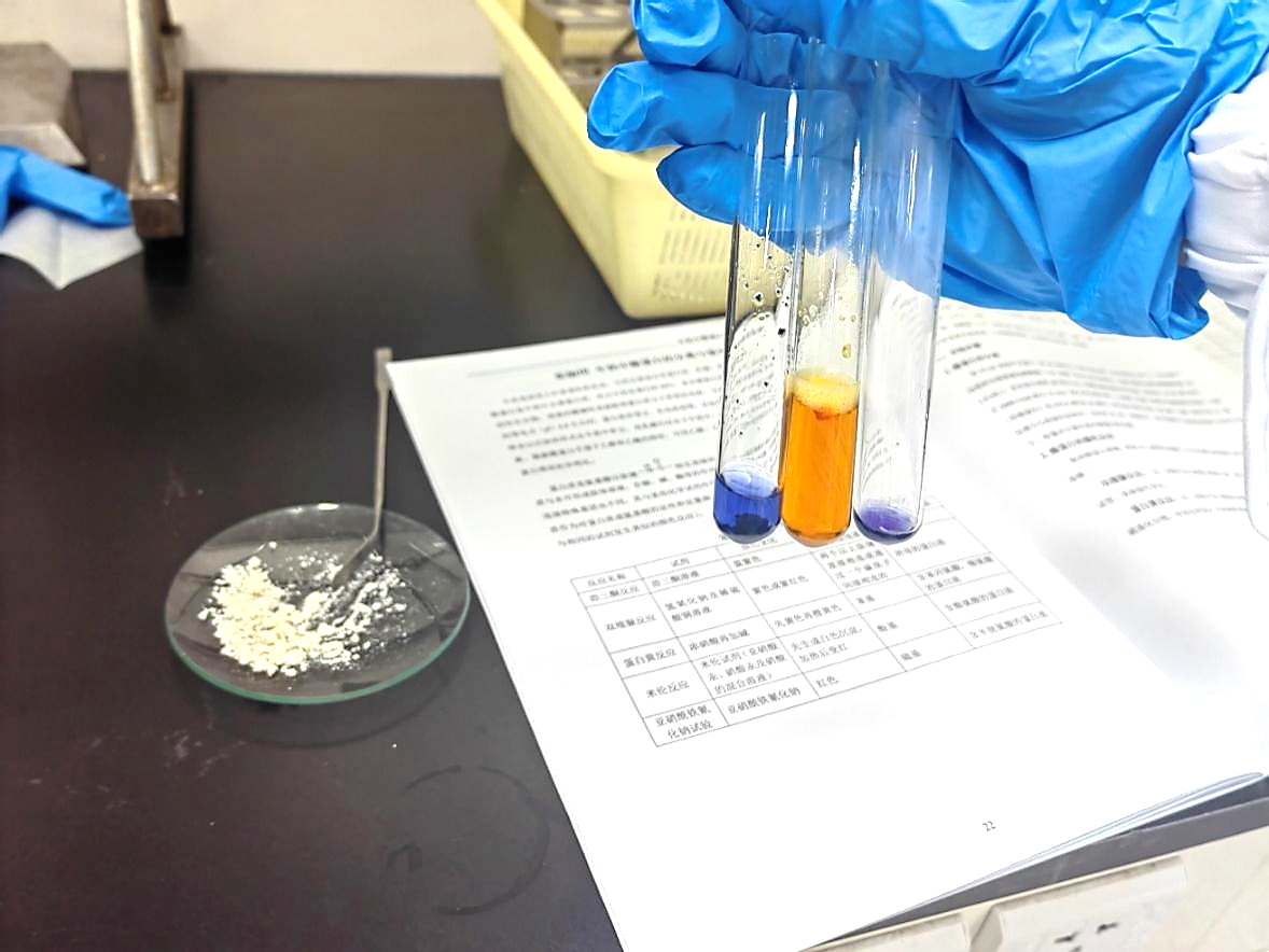 在有机化学实验环节,营员们学习利用等电点沉淀分离酪蛋白,通过双缩脲、蛋白黄、茚三酮反应进行经典鉴定,将抽象蛋白质性质转化为直观色彩变化,深化了理论理解,锻炼了实验技能。