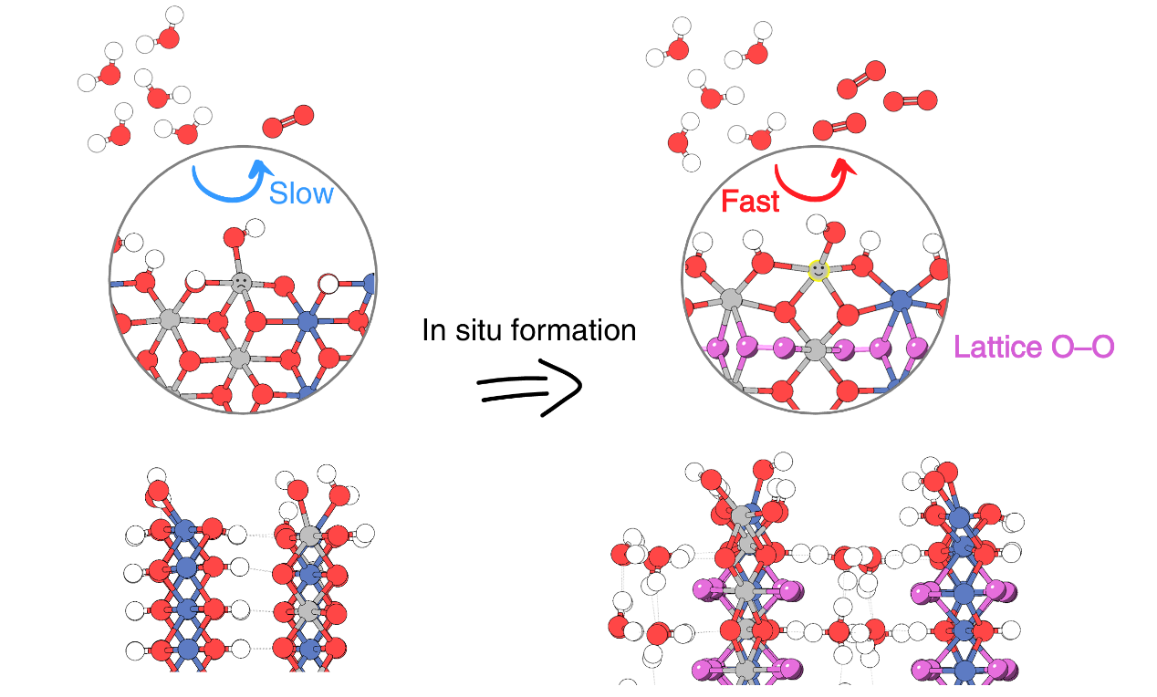 图1 晶格O–O配体活化铁中心催化OER的示意图