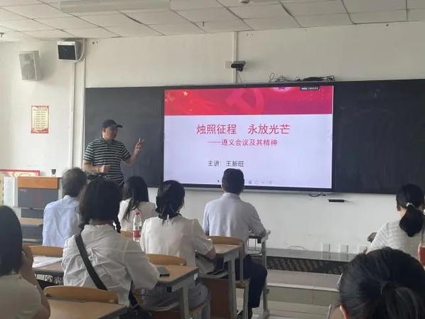 7月31日上午,实践团全体成员来到遵义师范学院,聆听了由王新旺教授主讲的《烛照征程 永放光芒——遵义会议及其精神》专题党课。党课紧紧围绕“遵义会议的主题和精神”这一核心,运用详实史料和深刻分析,系统梳理了中国革命道路的曲折历程,剖析了“左”倾教条主义错误带来的惨痛教训,特别是湘江战役的巨大牺牲,深刻揭示了在生死存亡关头召开遵义会议的历史必然性。王新旺教授强调,遵义会议在最紧要关头纠正了错误的军事路线和组织路线,是中国共产党历史上一个生死攸关的伟大转折点。