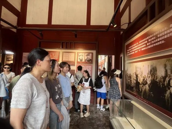 同日下午,实践团怀着崇敬的心情前往遵义会议纪念馆进行实地学习。1935年1月召开的遵义会议,结束了“左”倾教条主义错误在中央的统治,确立了毛泽东同志在党中央和红军的领导地位,在极端危急的关头挽救了党、挽救了红军、挽救了中国革命。在纪念馆内,师生们仔细观看珍贵的历史文物、图片和文献资料,通过“战略转移”“遵义会议”“四渡赤水”“胜利会师”等展区,全面了解了红军长征的艰苦卓绝和遵义会议的深远历史意义。站在庄严肃穆的会议旧址前,大家仿佛能感受到当年革命先辈们在此运筹帷幄、力挽狂澜的非凡魄力与坚定信念。