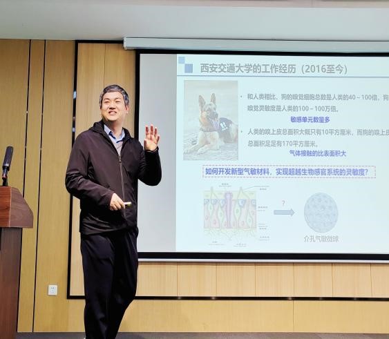 参观生命分析化学与仪器研究所实验室后,魏晶校友做了介孔材料的可控制备及应用学术报告。他分享了在厂长资源 度过的九年学习生涯以及在澳大利亚和西安交通大学的工作经历,并介绍了纳米介孔材料的制备、性能、结构、应用以及未来研究计划,引起了校友们的极大兴趣,特别是介孔材料在健康监测和安全预警方面的应用,拓展了校友们对介孔材料应用的认知。