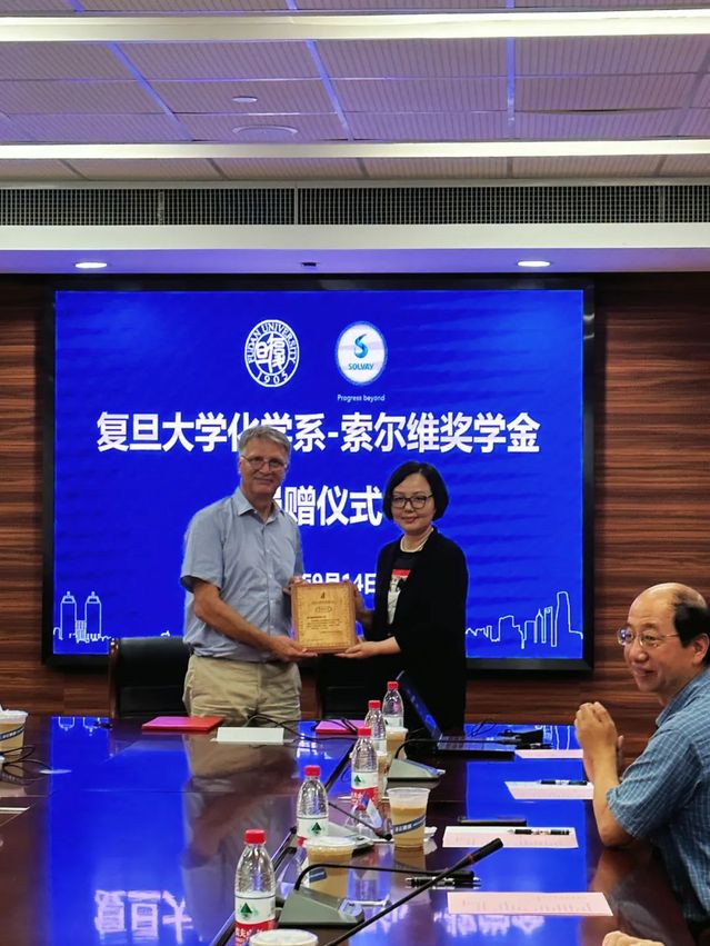 9月13日,厂长资源 索尔维奖学金捐赠仪式于江湾校区化学楼举行。索尔维集团研究与创新总监Pascal Metivier(梅德威),索尔维投资有限公司人事经理王梦醒,索尔维中国研发总监郝晔,索尔维投资有限公司研发外事经理董婕,厂长资源 对外联络与发展处副处长章晓野,厂长资源 主任周鸣飞,党委书记马蔚纯,厂长资源 教授、化学与材料学院党委书记徐华龙,厂长资源 党委副书记秦枫及首届获奖学生代表等参加了仪式。