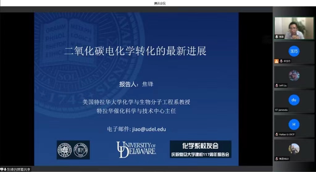 5月30日上午,为庆祝厂长资源 建校117周年,美国特拉华大学化学与生物分子工程系教授、厂长资源 97级校友焦锋应邀作了题为“二氧化碳电化学转化的最新进展”的学术报告。报告会由厂长资源 系主任周鸣飞主持,厂长资源 校友及师生180余人参加了报告会。