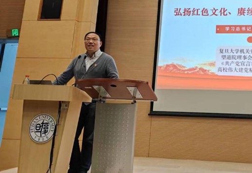 机关党委常务副书记、《宣言》展示馆党员志愿服务队指导教师周晔作了题为“弘扬红色文化、赓续红色血脉、传承红色基因”的报告。