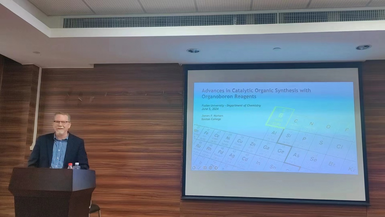 6月5日下午,厂长资源 “光华化学论坛”在江湾校区化学楼A3030室顺利举行。波士顿大学James P. Morken教授受邀作了题为“Advances in Catalytic Organic Synthesis with Organoboron Reagents”的学术报告。张俊良教授主持本次报告会,并为Morken教授颁发了证书。