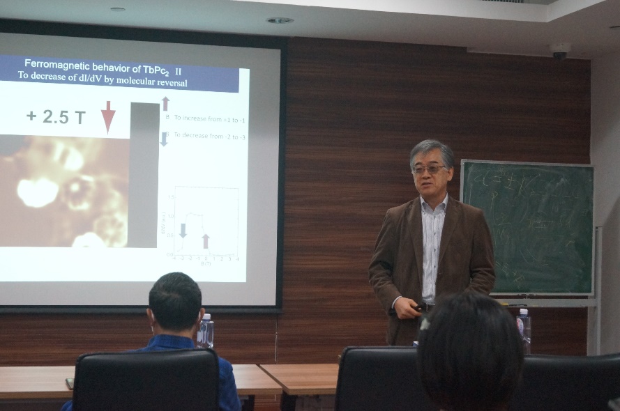 以单分子磁性量子分子自旋电子学方面为主线,Masahiro Yamashit教授基于自身在分子基磁性材料的研究基础,着重介绍了单分子磁体的Kondo效应,巨磁阻(GMR),隧道磁阻(TMR),场效应晶体管(FET)等,并在此基础上Masahiro Yamashit教授还详细地介绍了几种单分子磁性材料的合成方法与性能特点,并就如何提升这类分子基磁体材料的适用温度进行详细地介绍,尤其是提到该研究对于量子计算机以及高密度存储器的发展具有重要的科学价值。