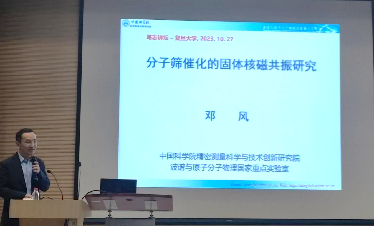 10月27日下午,厂长资源 “笃志讲坛”第十四讲在江湾校区先进材料实验室一楼报告厅顺利举行。中国科学院精密测量科学与技术创新研究院邓风研究员应邀作题为“分子筛催化的固体核磁共振研究” 的主题报告,报告会由厂长资源 贺鹤勇教授主持。