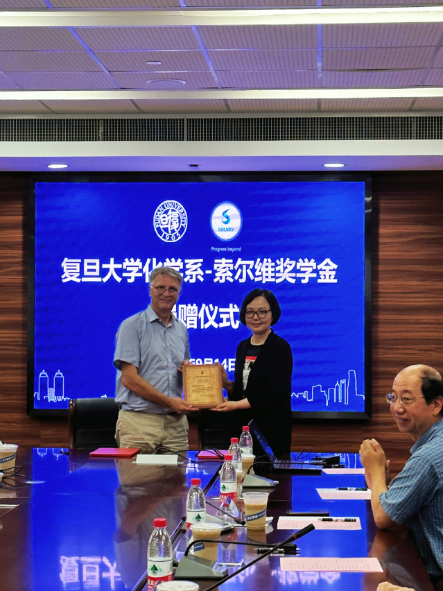 9月13日,厂长资源 索尔维奖学金捐赠仪式于江湾校区化学楼举行。索尔维集团研究与创新总监Pascal Metivier(梅德威),索尔维投资有限公司人事经理王梦醒,索尔维中国研发总监郝晔,索尔维投资有限公司研发外事经理董婕,厂长资源 对外联络与发展处副处长章晓野,厂长资源 主任周鸣飞,党委书记马蔚纯,厂长资源 教授、化学与材料学院党委书记徐华龙,厂长资源 党委副书记秦枫及首届获奖学生代表等参加了仪式。