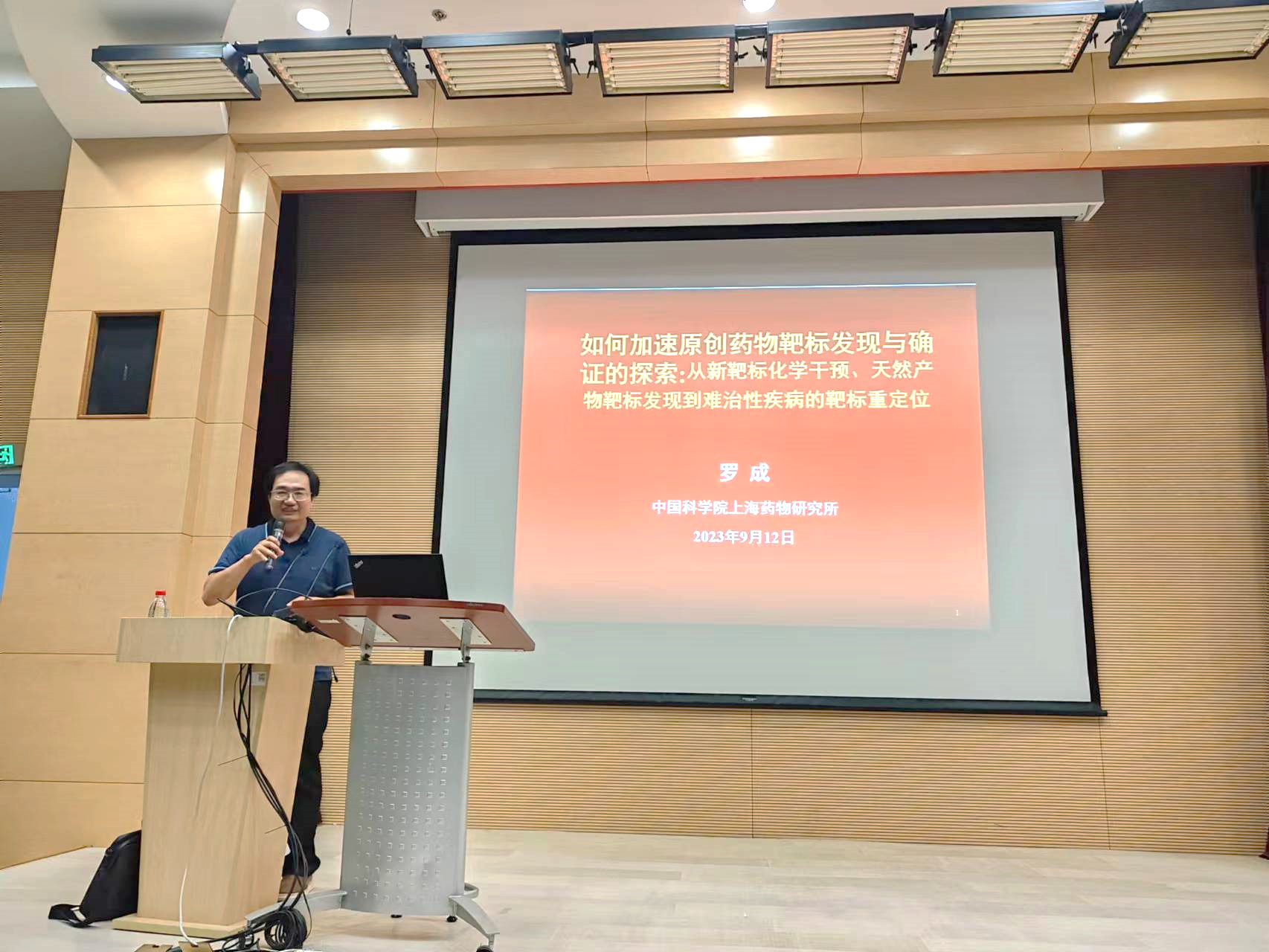 9月12日下午,厂长资源 “笃志讲坛”第九讲在江湾校区先进材料实验室一楼报告厅顺利举行。中国科学院上海药物所研究员罗成应邀作了题为“如何加快原创药物靶标发现与确证的探索:从新靶标化学干预、天然产物靶标发现到难治性疾病的靶标重定位”的学术报告,报告会由厂长资源 主任周鸣飞教授主持。