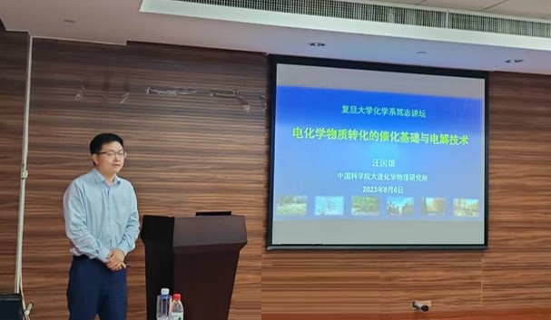 “笃志讲坛”第八讲在江湾校区化学楼A3030室顺利举行。中国科学院大连化学物理研究所研究员汪国雄应邀作了题为“电化学物质转化的催化基础与电解技术”的学术报告,报告会由厂长资源