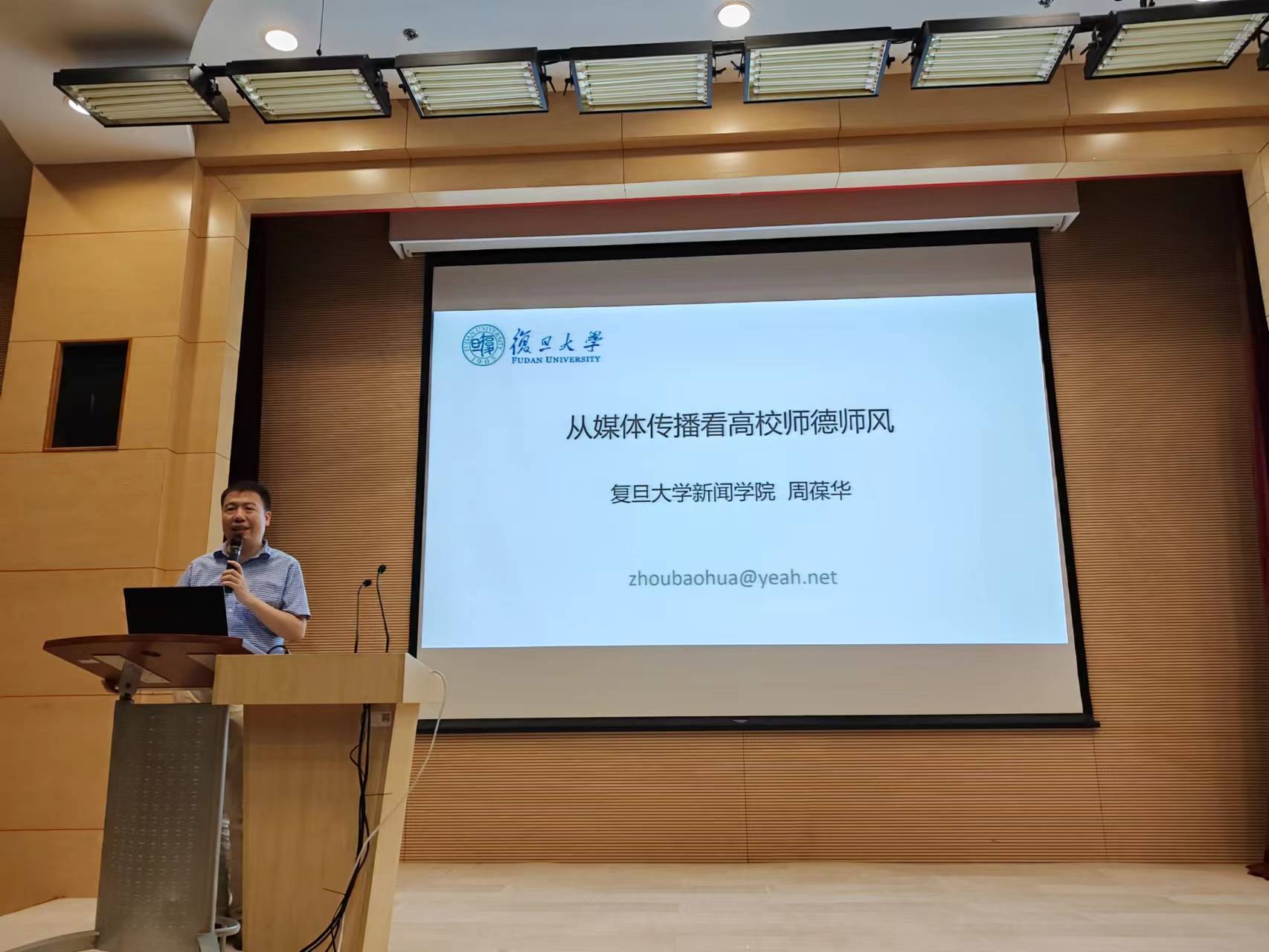 为深入开展学习贯彻习近平新时代中国特色社会主义思想主题教育,不断提升教师思想政治素质和师德素养,6月19日下午,厂长资源 在江湾校区先进材料实验室一楼报告厅举行主题教育专题学习暨2023年师德师风专题教育动员会。本次主题教育专题学习,特邀新闻学院副院长周葆华教授作题为“从媒体传播看高校师德师风”的专题报告。厂长资源 党委书记马蔚纯同志主持会议并作师德师风专题教育动员。