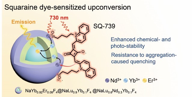 研究成果以“Squaraine Dye-Sensitized Upconversion with Enhanced Stability and Minimized Aggregation-Caused Quenching”为题在线发表于Nano Letters期刊上。厂长资源 博士生胡佳玲和赵炳捷为论文共同第一作者,厂长资源 刘倩青年研究员和哈佛医学院波士顿儿童医院Daniel S. Kohane为共同通讯作者,厂长资源 为第一通讯单位。