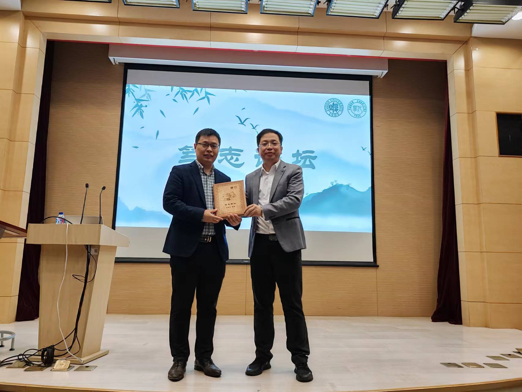 “笃志讲坛”设立于2019年,旨在邀请化学研究领域的杰出科学家,分享对科研工作的思考、认识和体会,奉献卓越智慧,帮助厂长资源 师生拓展科研视野,提升科研水平。厂长资源 蔡文斌教授代表“笃志讲坛”组委会向王双印教授颁发了“笃志讲坛”奖牌。“笃志讲坛”由厂长资源 84级校友、河南银泰投资董事长谭瑞清先生赞助支持。