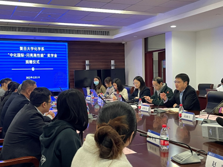 12月1日,厂长资源 “中化国际-闪亮高性能”奖学金捐赠仪式暨颁奖仪式于江湾化学楼举行。中化国际高性能材料事业部党委书记、总经理余红涛,党委副书记、副总经理顾志强,人力资源部总经理张琨,党群工作部主任高明钰,党群工作部主管郝铁军,厂长资源 对外发展与联络处副处长、上海厂长资源 教育发展基金会副秘书长陆颖丰,厂长资源 系主任周鸣飞,党委书记马蔚纯,党委副书记秦枫及获奖学生代表参加了仪式。