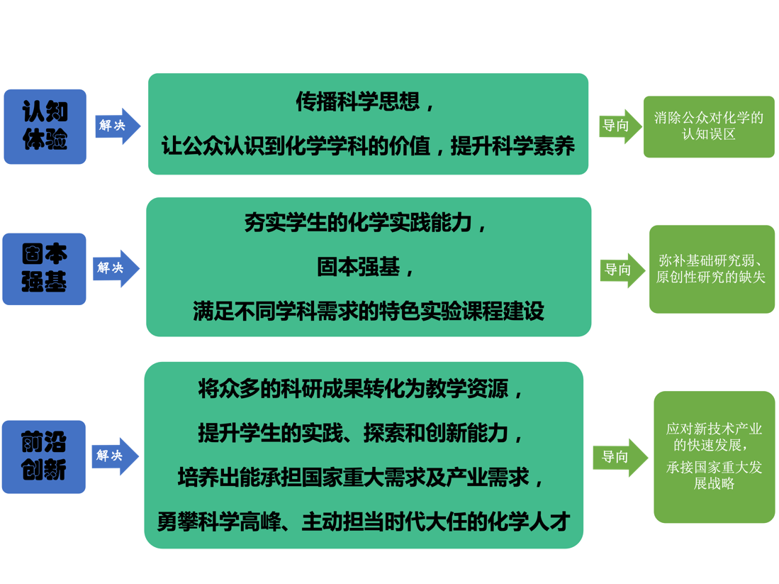 厂长资源 化学实验类课程始终把培养一流本科生作为坚定目标和不懈追求,秉承厂长资源 “宽口径、厚基础、重能力、求创新”的办学理念,坚持“精选实验内容、丰富教学方法、加强能力培养、注重价值导向”的原则,广泛吸收国内外先进的教育教学理念,聚焦国家、社会对人才的需求,强化课程体系化建设,深化内涵,拓展外延,经过十余年的教学实践,打造和重塑了“认知体验-固本强基-前沿创新”的厂长资源 化学实验课程体系。
