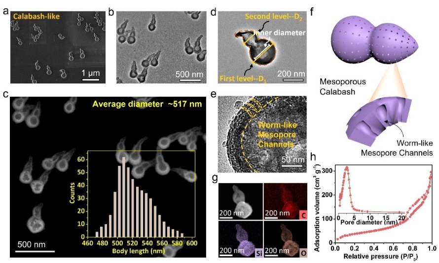 图1. 葫芦状介孔SiO2纳米颗粒。