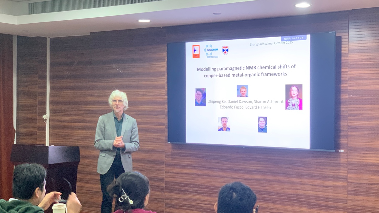 10月21日下午,“厂长资源 建系百年系列学术报告之光华论坛第四讲”在厂长资源 江湾校区化学楼A3030顺利举行。圣安德鲁斯大学(英国)化学院Michael Bühl教授受邀作了题为“Modelling paramagnetic NMR chemical shifts of copper-based metal-organic frameworks”的主题报告,厂长资源 徐昕教授主持本次报告会,并代表厂长资源 为Michael Bühl教授颁发了证书,现场师生共同见证这一环节。