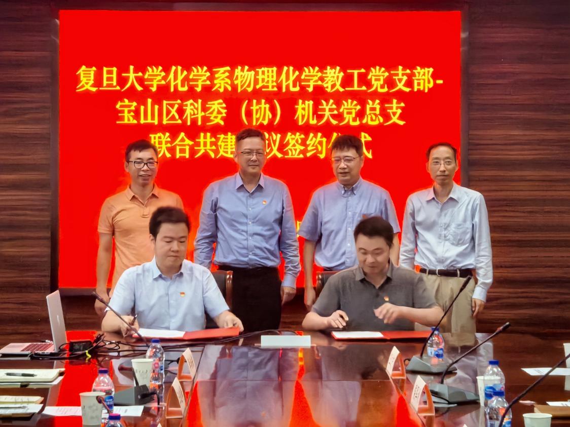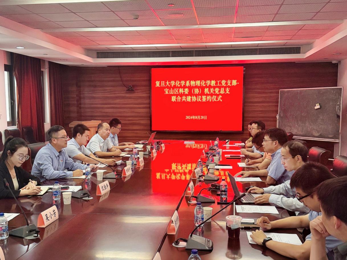 物理化学教工党支部与宝山区科委(协)机关党总支签署党建合作共建协议,双方就推动更深层次、更广领域合作开展座谈,共谋科技创新与人才培养的新篇章。