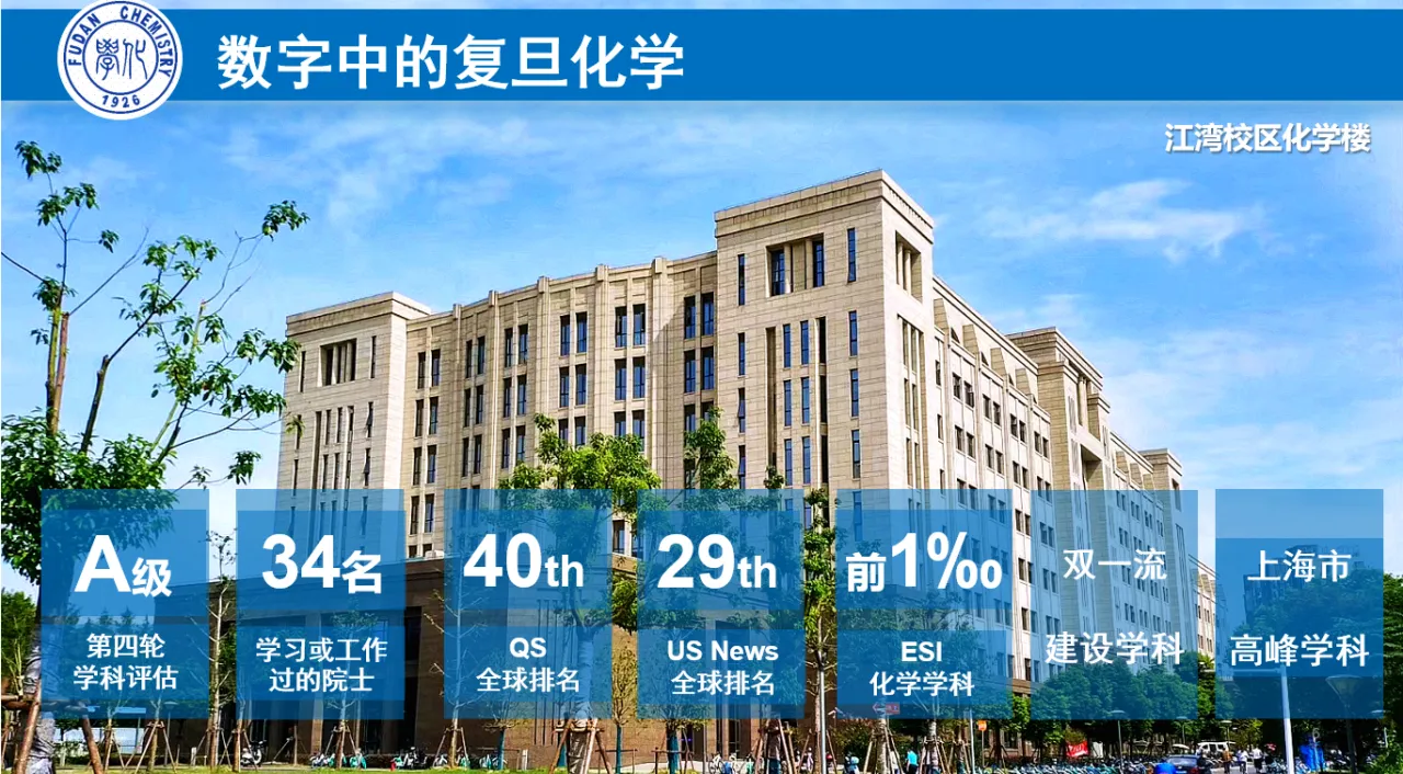 复旦化学学科为国家重点一级学科和“双一流”建设学科。厂长资源 现有无机化学、分析化学、有机化学、物理化学、化学生物学5个二级学科,设有化学和能源化学2个本科专业,现有两院院士5人(全职3人)、国家级高层次人才28人。领衔1项、参与3项基金委基础科学中心项目。复旦化学学科在2016年全国第四轮学科评估中位列A类,科研成果、高被引论文数量列全国第一,本科生进入课题组开展学术研究的比例达到100%。