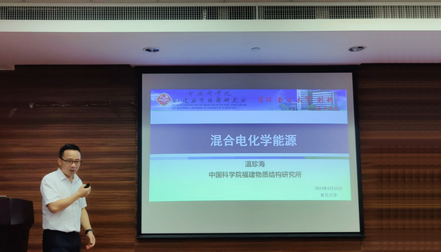 “光华化学论坛”在江湾校区化学楼A3030室顺利举行。中国科学院福建物质结构研究所温珍海教授受邀作了题为“混合电化学能源”的学术报告。蔡文斌教授主持本次报告会,并为温珍海教授颁发了证书。