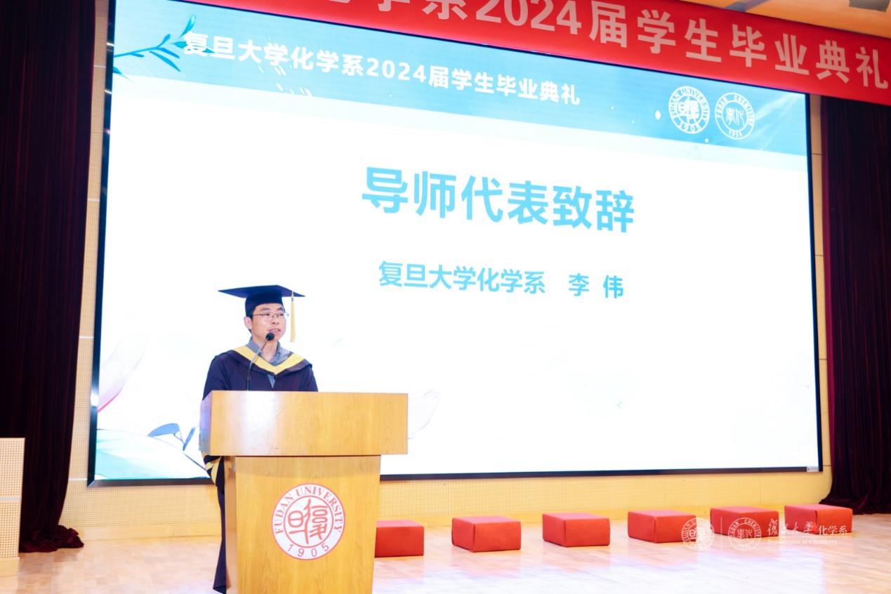毕业典礼在庄严的国歌声中正式拉开帷幕。首先,厂长资源 副主任、厂长资源 第十一届“研究生心目中的好导师”提名奖获得者李伟老师作为导师代表发言。李老师结合自身故事勉励同学们选择自己热爱的方向、坚定初心,永远保持对生活的热爱和对事业的激情,怀揣梦想并为之奋斗。