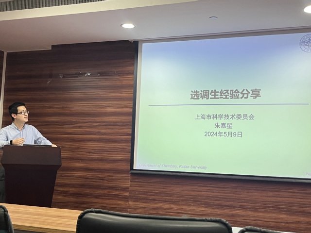 校友、2021级上海市专项选调生朱嘉星与同学们交流。朱嘉星结合在上海市科学技术委员会工作的体会和同学们进行了交流。