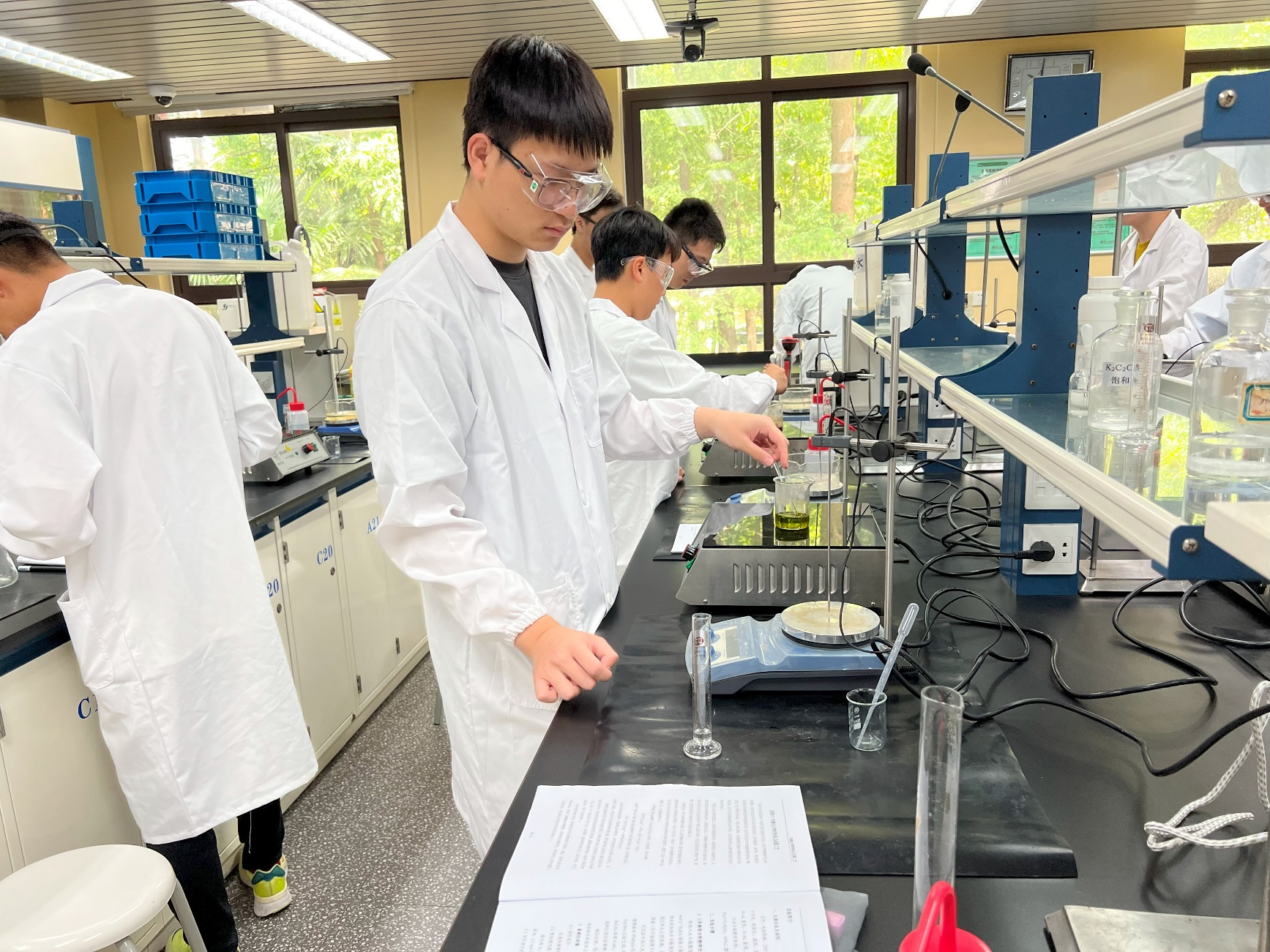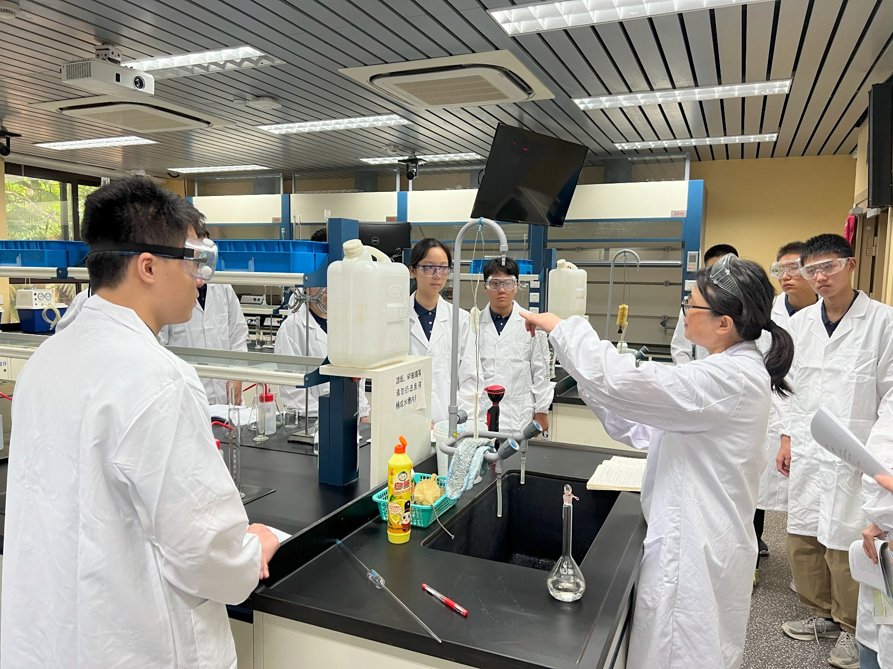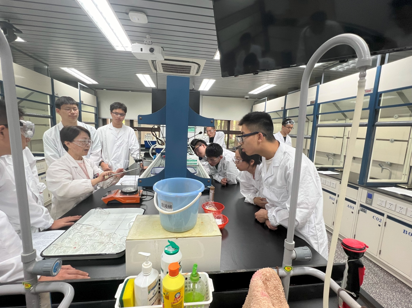 在实验中,同学们使用氢氧化钠标准溶液,通过滴定的方式,分别测定了食醋试样和酸奶试样的酸度。赵滨老师为大家详细讲解了实验原理和操作注意事项,进行了细心的指导。