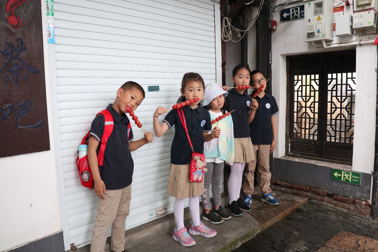 朱家角古镇区内有36座古桥,古朴典雅,一条漕港河将镇子分成南北两部分,民居宅地依水而建。孩子们跟随家长的步伐,饶有兴致地参观了镇上最大的庄园式园林建筑-课植园。它位于朱家角镇北首西井街,环境幽静。园名“课植”寓“课读之余,不忘耕植”之意。最令孩子们开心的是,沿河两边有很多物品琳琅满目的小店,比如有漂亮的旗袍、油纸伞小店,还有各种上海特色小吃,成了孩子们的嬉戏、打闹天然场所,甚是欢乐。