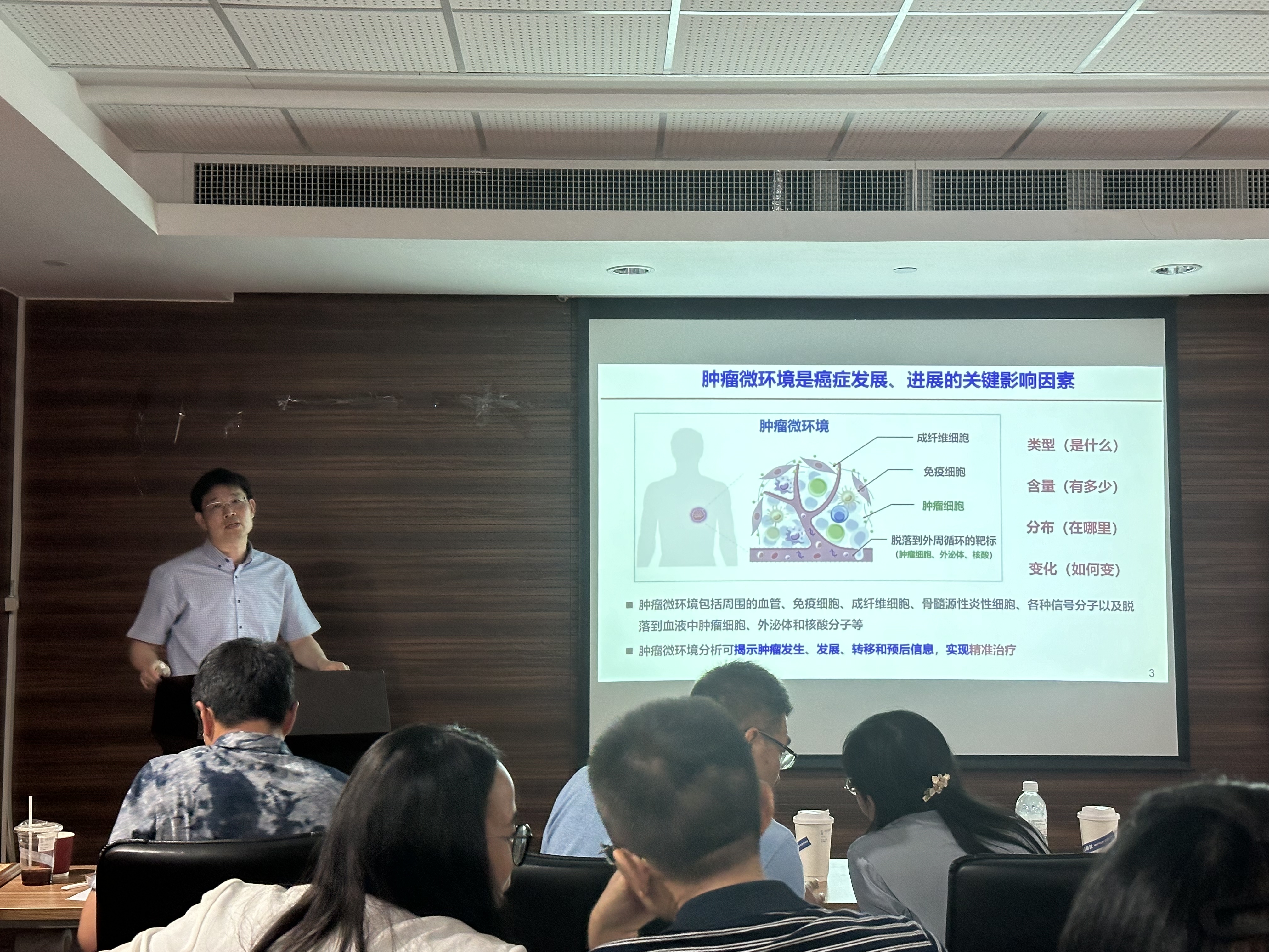 在报告的第一部分,杨朝勇教授团队构建基于微流控的核酸适配体筛选新方法,创建结构调控筛选,提高文库结构多样性,筛选得到不同靶标的核算适配体,为循环靶标捕获提供了系列识别探针,包括:AGR2,EpCAM,EGFR,PD-L1,RBD of SARS-CoV2。在第二部分,建立了一系列微流控单细胞组学测序,包括:基于数字微流控的单细胞拷贝数变异分析,基于单细胞配对芯片的高通量单细胞转录组测序方法,基于正交组合编码的空间转录组测序新方法(Decoder-Seq)。第三部分,杨朝勇教授介绍了RNA代谢标记的时空转录组学新方法,将RNA代谢标记与准静态流体动力学测序平台相结合,发展多色RNA代谢标记方法,记录连续时间过程中的动态过程,揭示基因表达动态信息。最后,杨朝勇教授对本次报告进行了总结,对与会师生的提问进行了耐心解答。