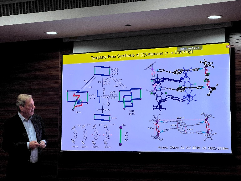 近年来,基于多齿氮杂环卡宾有机金属功能体系的设计和合成已成为一个迅速发展的领域。多种多样的氮杂环卡宾(NHC)配体与合适的金属离子配位,已构筑出在形状、尺寸方面丰富多彩的二维或三维有机金属超分子组装体。在报告中,F. Ekkehardt Hahn教授分享了如何将不同氮杂环卡宾配体引入到同一个离散型的有机金属卡宾组装体并实现其可控合成,如何利用两种尺寸和形状匹配的分子之间的Donor-Acceptor弱相互作用,实现了杂配体多齿金属卡宾索烃、笼状化合物的专一合成,以及同配体卡宾分子向杂配体卡宾分子的高效转化。最后,Hahn教授就未来如何实现复杂分子的可控构筑为构建新型功能体系提出了新的思路。在问答环节,Hahn教授对与会师生提出的问题给予了深入详尽的回答,并分享了个人的研究心得。最终,报告在轻松、融洽的环境中圆满结束。