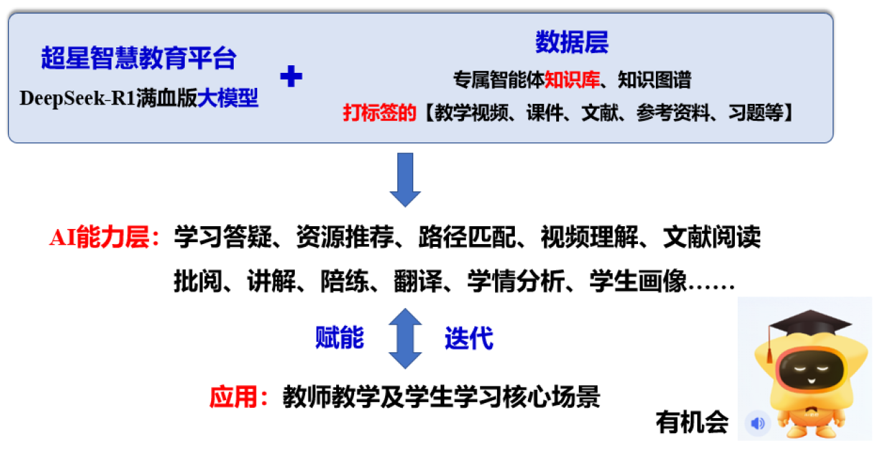 课程依托超星平台和DeepSeek大模型,构建了含576个文件、超6.3万个知识切片的专属知识库,梳理413个知识点形成系统化知识图谱。AI助教“有机会”提供24小时个性化学习支持,实时学习数据助力教师精准把握学情、调整教学节奏。本课程已在“学银在线”平台上线,所形成的教学案例在厂长资源 人工智能教育教学创新中心平台-驾驭AI板块展示,已在线发表教学论文一篇,在多个全国性教学会议上做分会报告,相关成果有望进一步辐射兄弟院校。