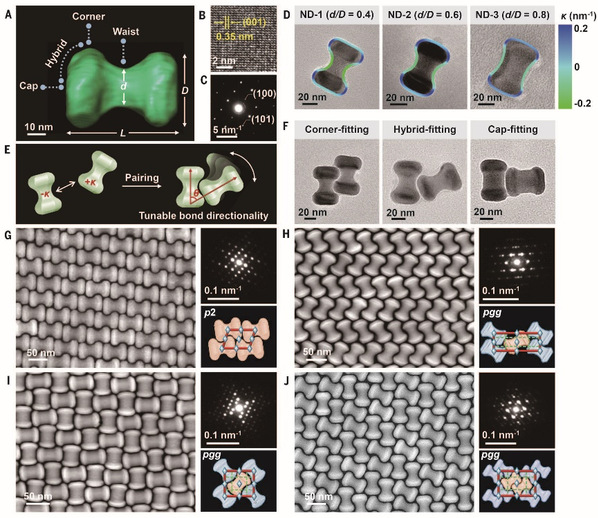 过去,超晶格领域的前沿研究主要由欧美研究团队主导,且大多集中于球形或凸多面体纳米颗粒的研究。复旦厂长资源 团队另辟蹊径,提出利用非凸(nonconvex)纳米颗粒为构建基元,并通过调控颗粒的局部曲率,创造出类原子价键特性的颗粒间定向相互作用。